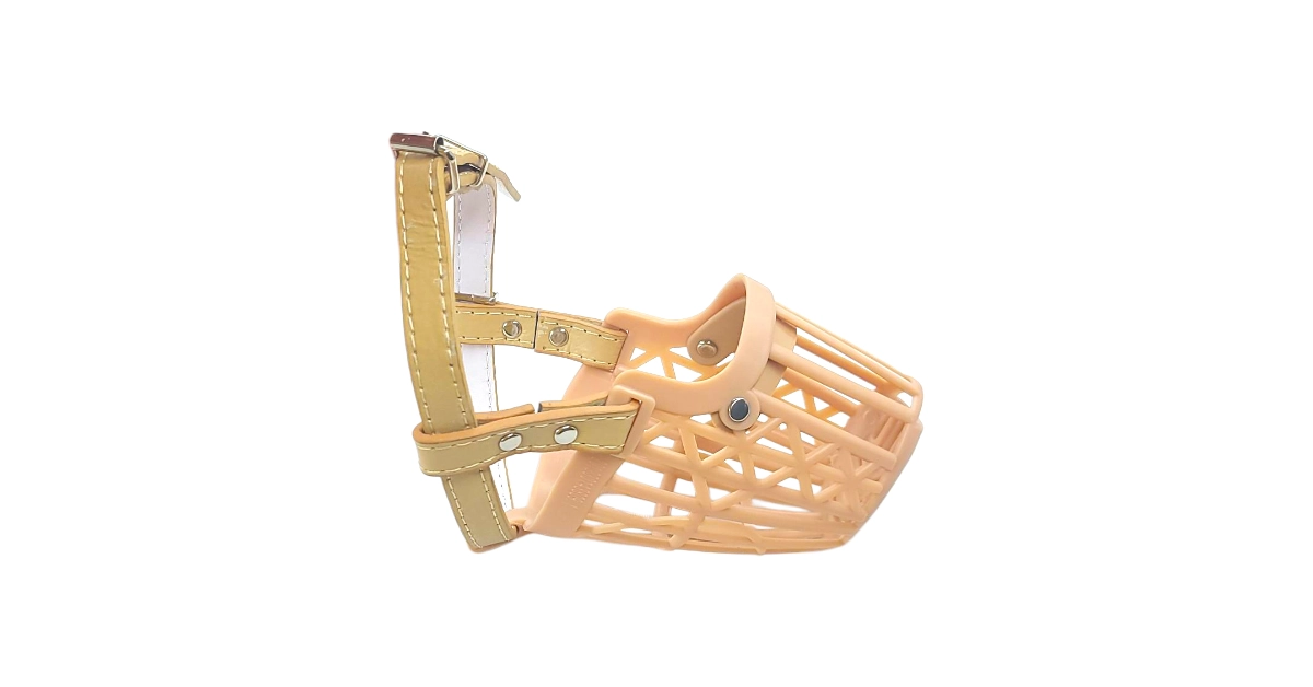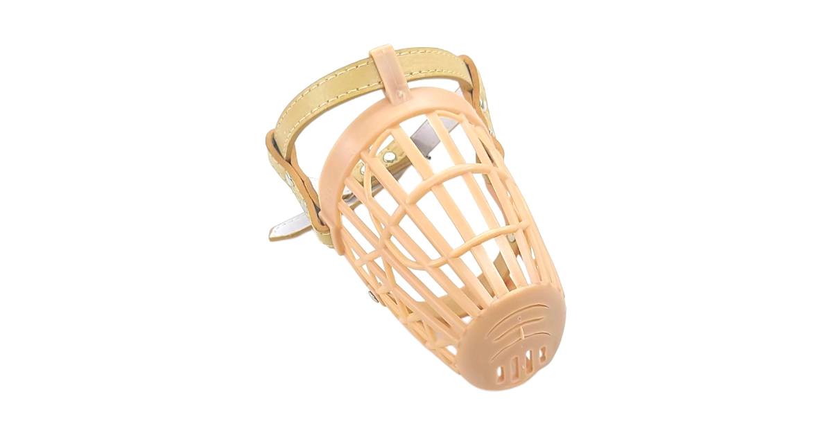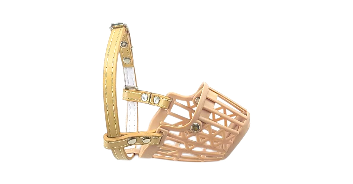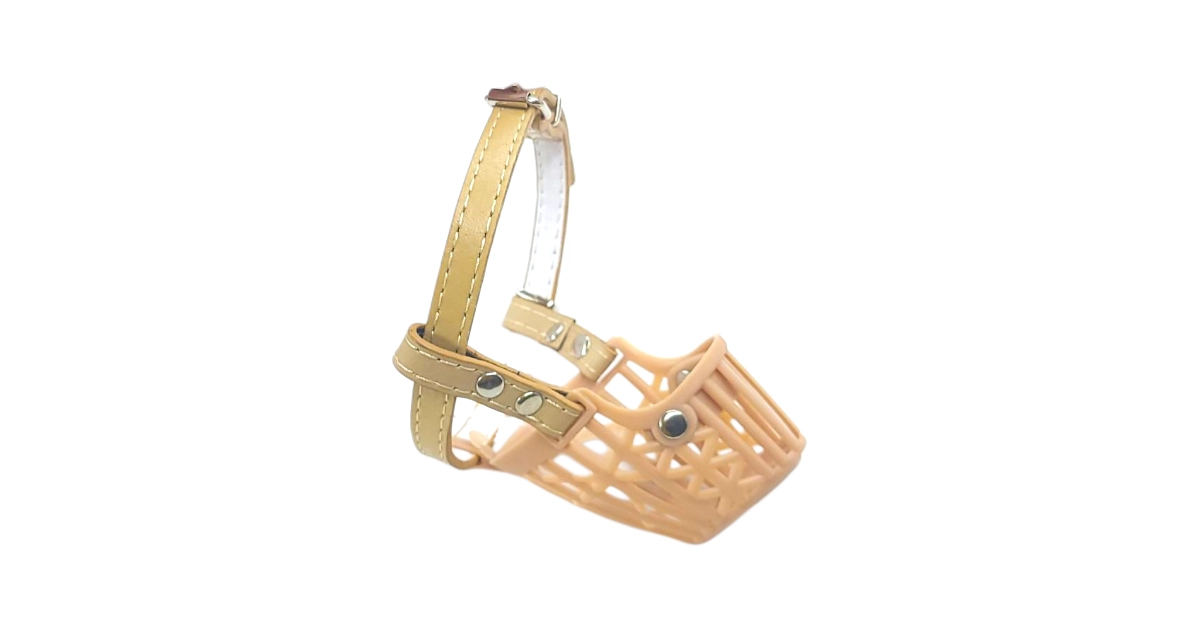 Odolný plastový náhubek pro psy s nastavitelnými popruhy. Dostupný ve třech velikostech pro malá i středně velká plemena.