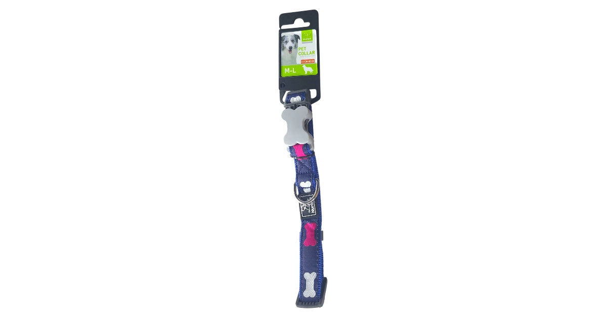 Obojek lze jednoduše přizpůsobit díky posuvné přezce. Velikost M–L je vhodná pro obvod krku 35–55 cm.