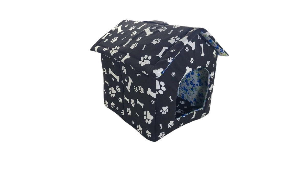 Hledáte pohodlný a stylový pelíšek pro svého většího pejska? Tento látkový domeček s potiskem tlapek a kostí je ideální volbou. Nabízí vašemu mazlíčkovi útulné místo na odpočinek i úkryt – perfektní domácké zázemí, kam se rád vrátí. Díky lehké konstrukci se snadno přenáší, je skvělý i na cesty nebo do auta.